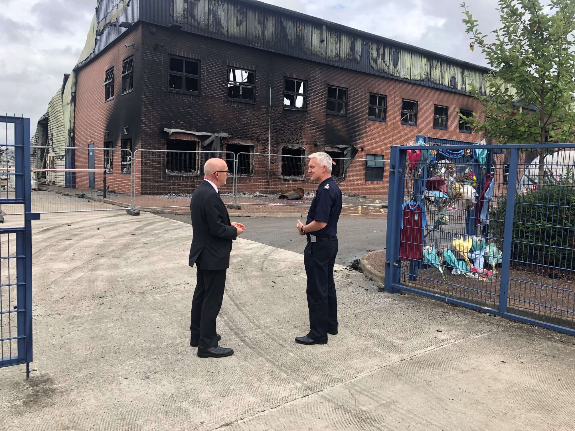 Visiting Leeson Polyurethanes factory in the aftermath of the fire and meeting emergency service heroes