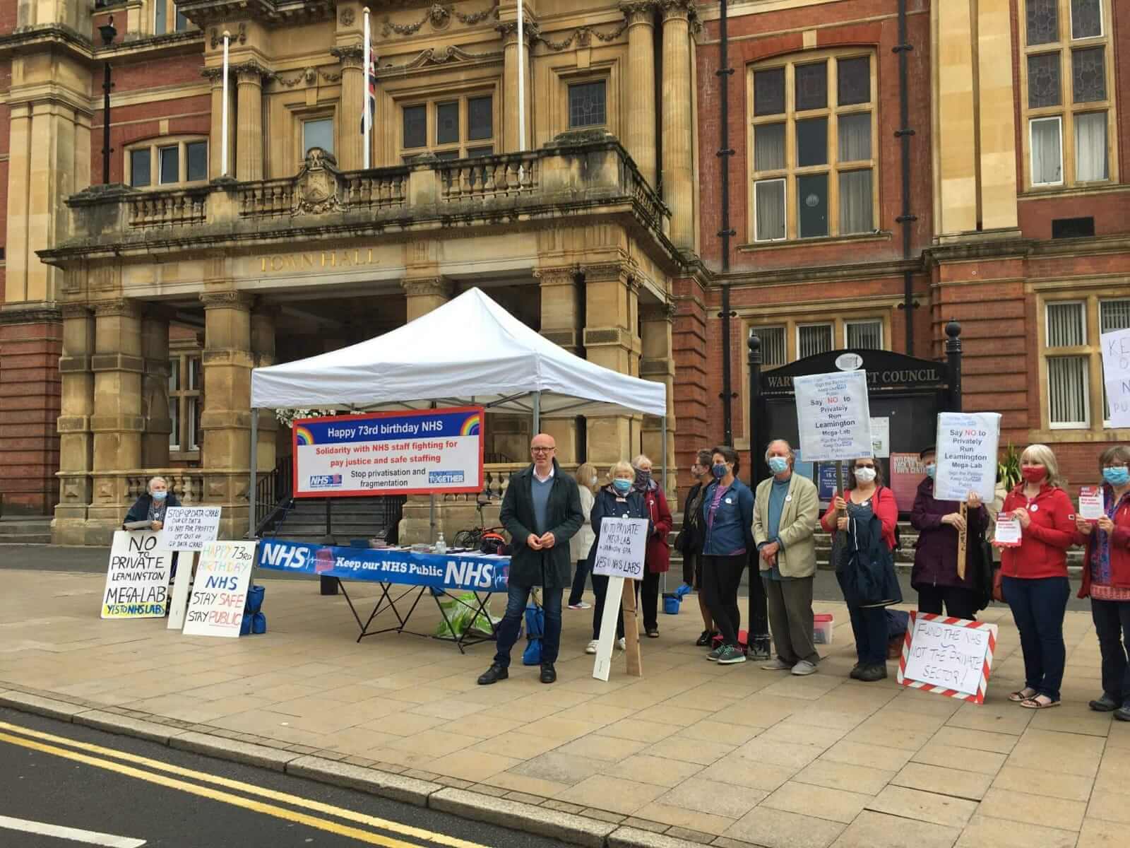 Celebrating the NHS’ 73rd birthday and campaigning against private Leamington megalab